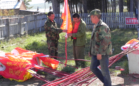 因为去年冬天雪大,今年春天雨水也比较大,4月份了,嘎拉山林场的雪还恋恋不舍的不肯消失,所以今年的春防来的稍微晚了一些,4月5日,嘎拉山全体领导和后勤人员全部到岗。4月6日,扑火队员全员上岗。当天下午召开嘎拉山林场春季防火大会。会上,嘎拉山林场陈立斌书记把目前的气候状况和大家详细并且严肃的分析了一遍,然后根据林场的实际情况,把整个事业区划分成两个片,南片和北片,分别由两个副场长包片,南片,三条防火路线;北片,两条防火路线。防火队员分成两个队,由两名副厂长带领分别负责南片和北片的防火、巡护工作。4月7日,全员整理、修缮防火工具(放火车、灭火器)和和防火设施(对讲机、防火旗帜、标语,检查站维修等)。为了打好春防这场硬战、嘎拉山林场一切准备就绪,正式进入了备战状态